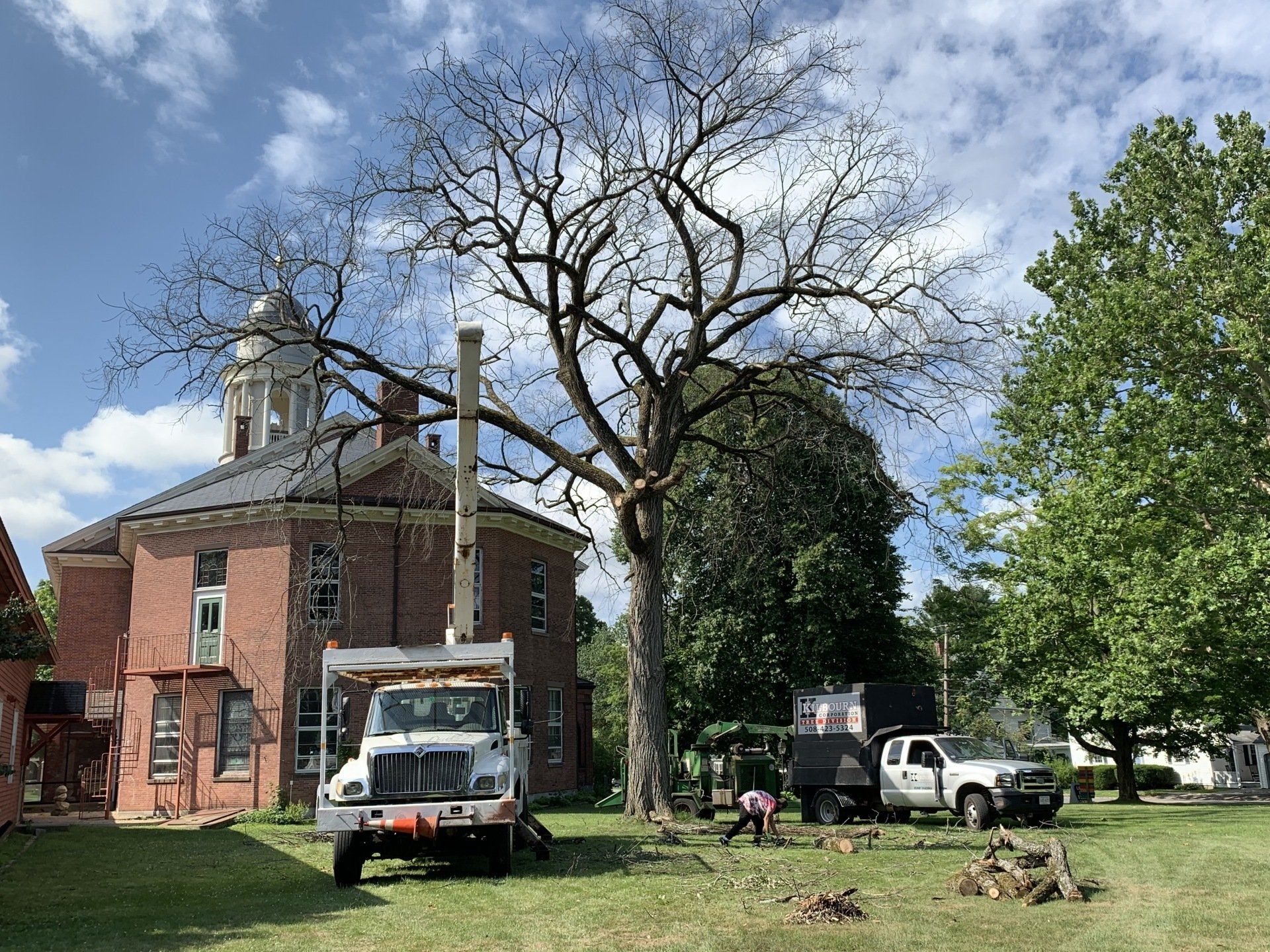 Equipped with bucket truck, log truck, woodchipper, climber on staff, crane and stump grinding services available.